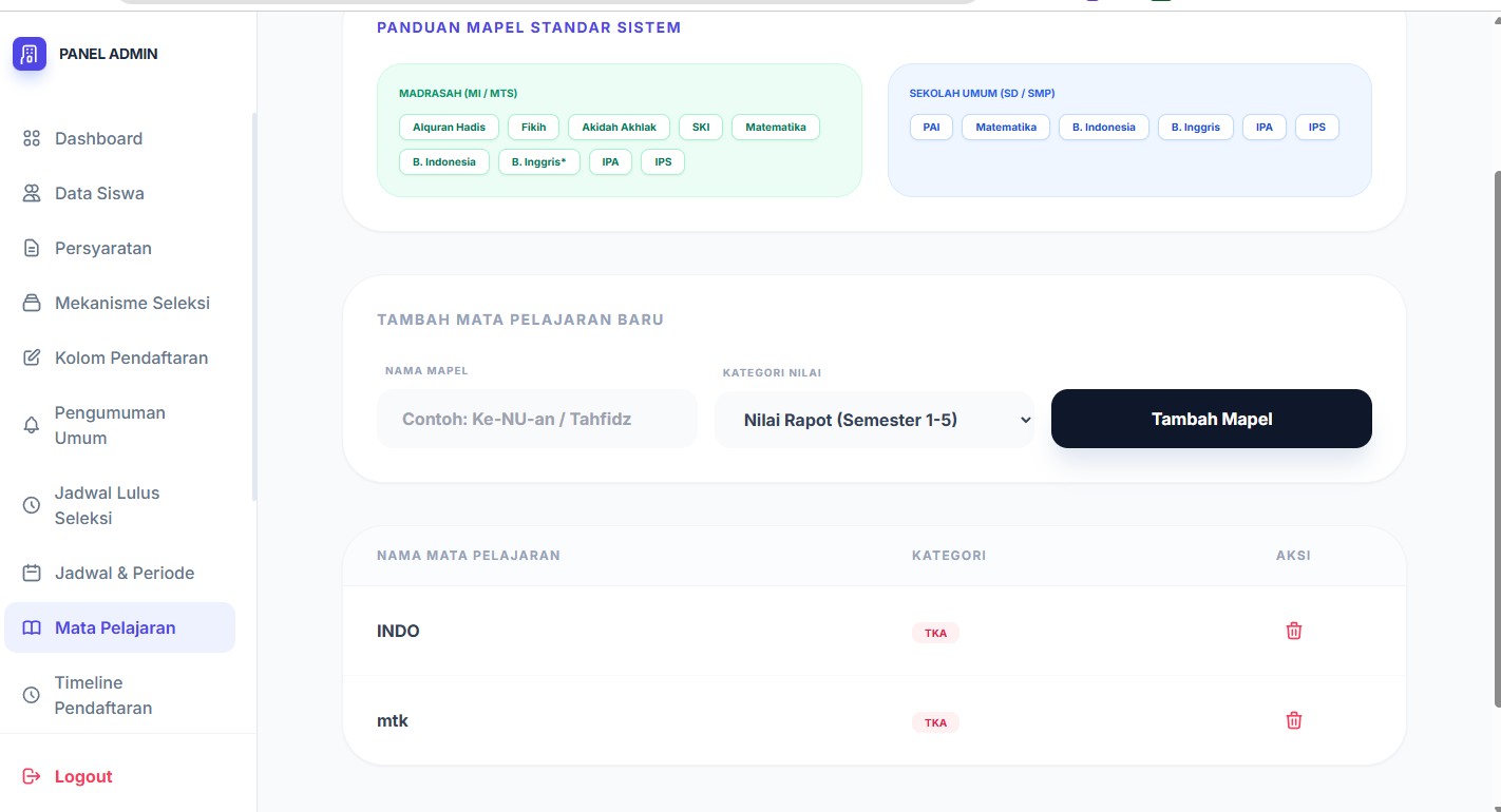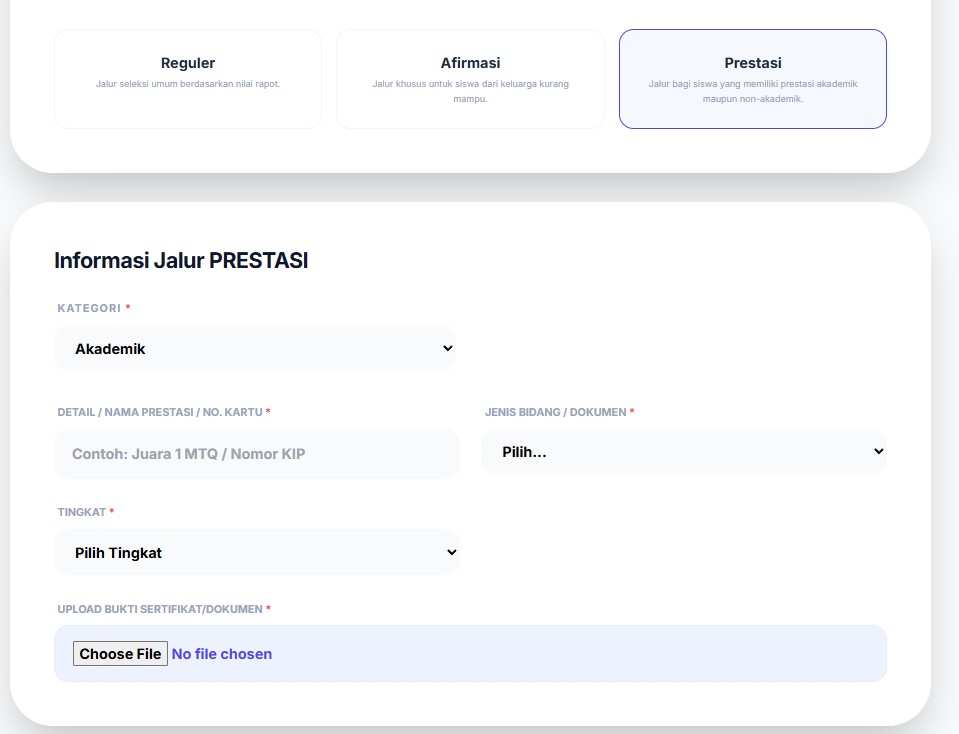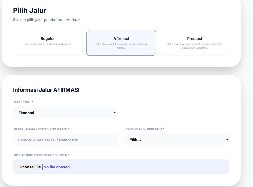 Sistem Jalur Pendaftaran: Mendukung multi-jalur (Prestasi, Afirmasi, Reguler) sesuai aturan Kemdikbud/Kemenag terbaru.