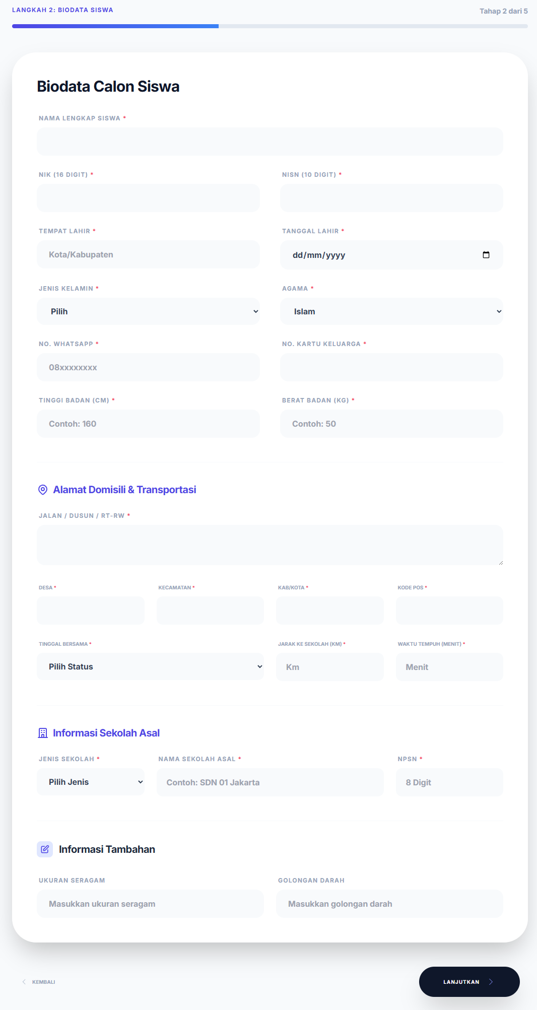 Otomatisasi Dokumen: Siswa mendaftar, sistem otomatis men-generate Kartu Peserta Ujian dan Formulir Biodata dalam format PDF siap cetak.