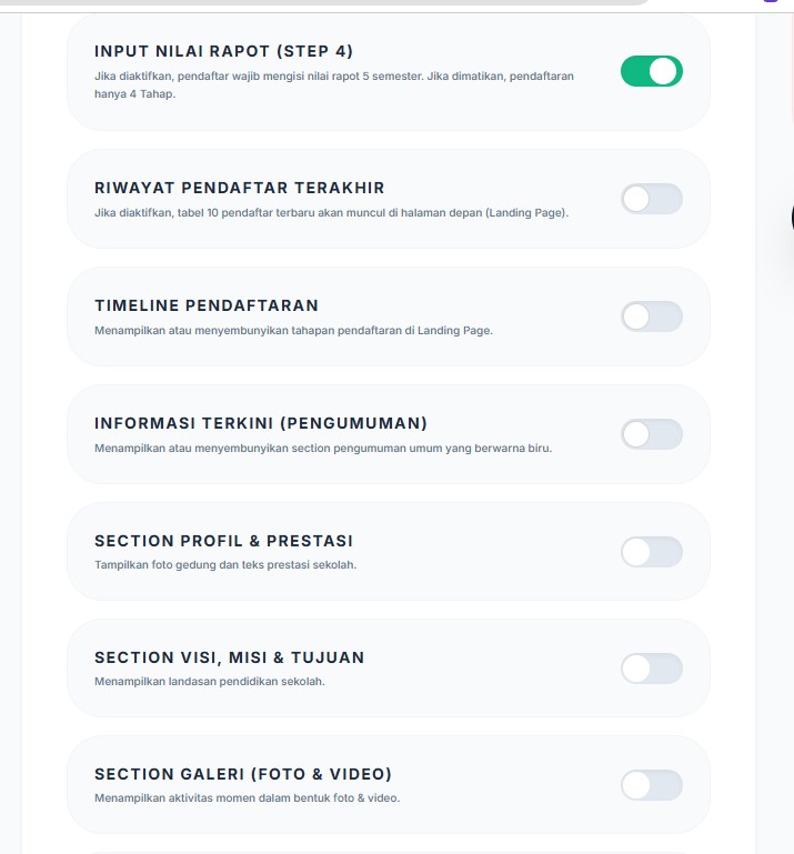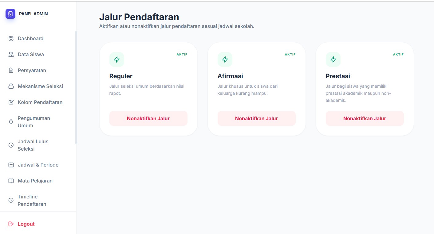 Atur pembukaan jalur pendaftaran (Prestasi, Afirmasi, Reguler) dengan periode waktu yang berbeda-beda secara otomatis.